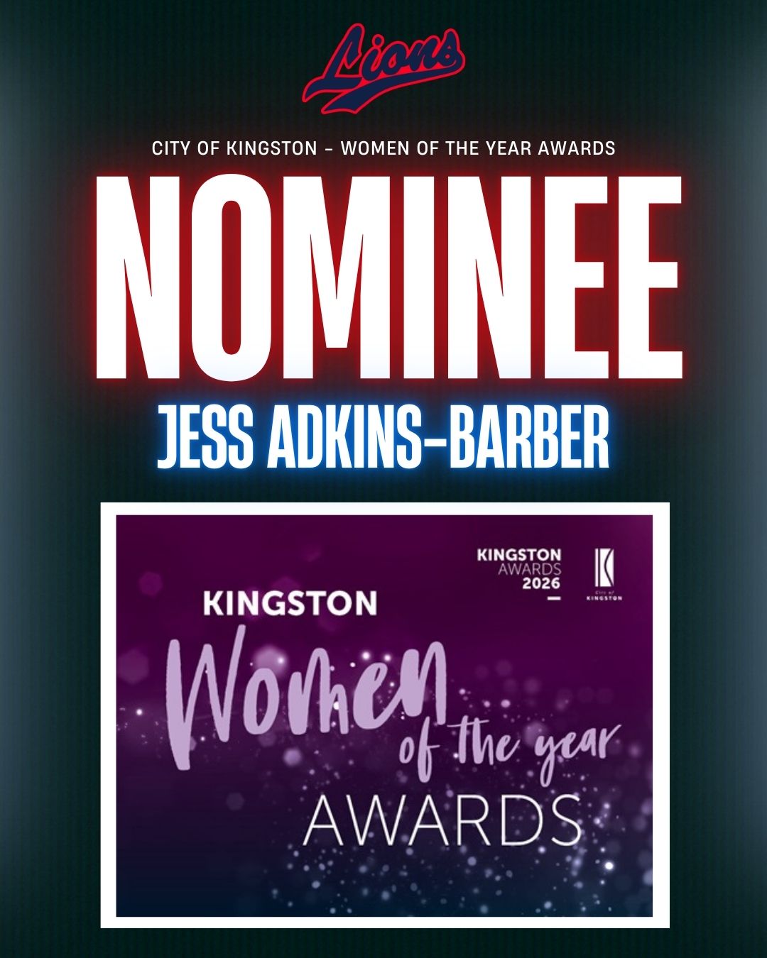 The Springvale Lions Baseball Club is proud to celebrate Club President and coach Jess Adkins‑Barber, who has been recognised by the City of Kingston as part of the 2026 International Women’s Day Awards. The honour acknowledges her outstanding contribution to community sport, local business, and the creation of inclusive spaces where people of all ages and backgrounds can thrive.
